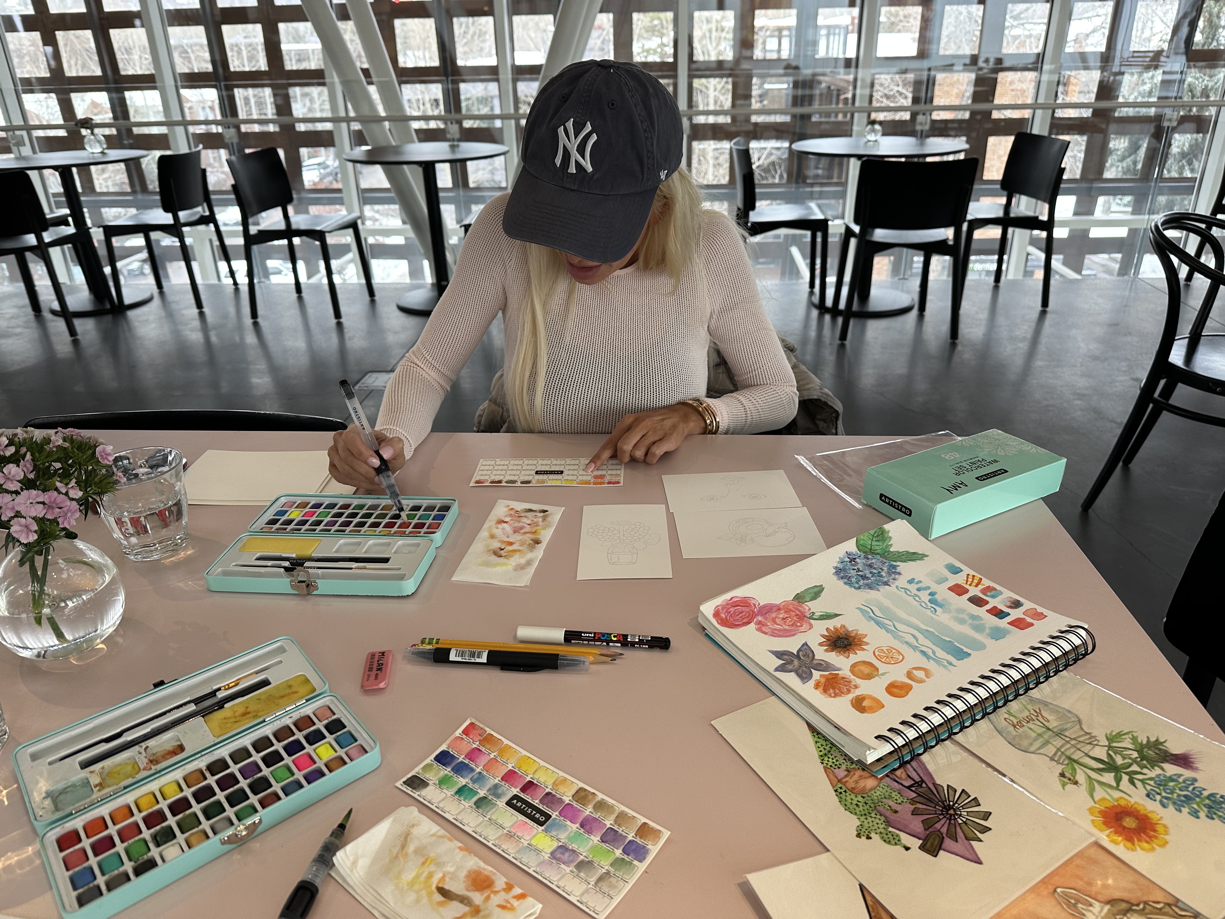 I offer private classes and corporate events too! A creative way to celebrate a birthday or an event for a group of friends, family or corporate gathering. Pricing and details for a two-hour class are as follows: Up to 2 people – $225; Up to 4 people – $75 each; Up to 8 people – $65 each; Up to 12 people – $55 each; Up to 14 people – $50 each. You will be able to select the painting of your choice and schedule the day and time that works well for you and the instructor. Call 646-727-6367 to book a private watercolor class.