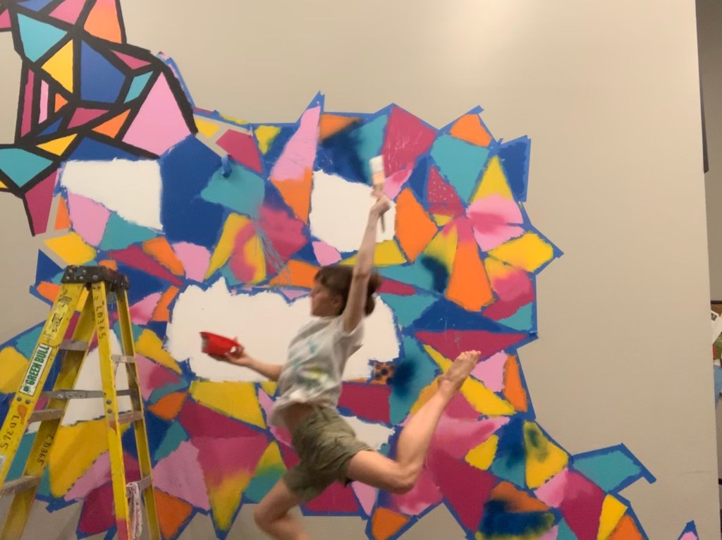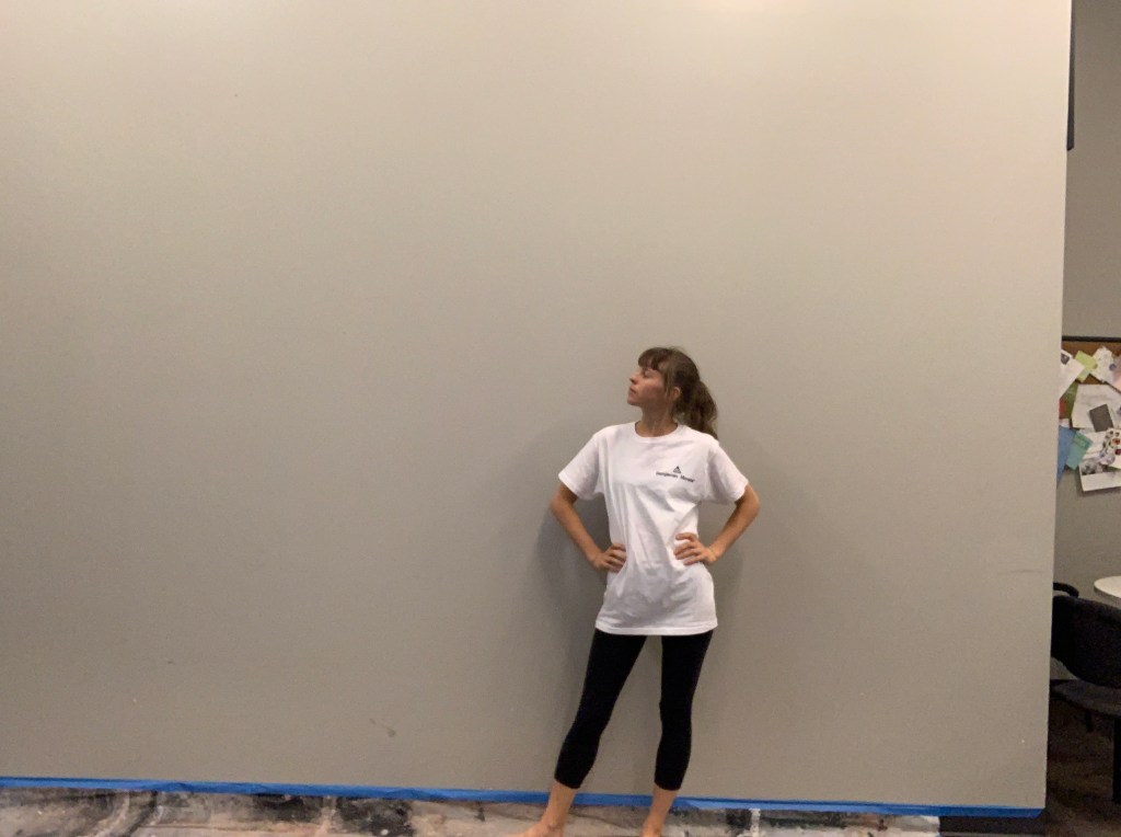 - Finished size: wall behind the theatre stage 8’w x 10’h