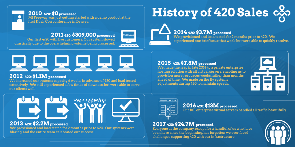 I collaborated with a cannabis SaaS company called MJ Freeway to create a cohesive digital marketing presence through eblasts, website content, infographics, and social media campaigns. My work focused on translating complex product features into clear, engaging visuals and messaging that educated users, strengthened brand recognition, and supported customer acquisition efforts.